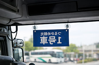 観光バスや乗用車のフロントガラスに掲示する吸盤式フラッグもオリジナルで製作できます。