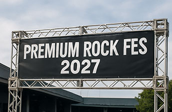 フェス会場のゲートやライブステージの上部に掲示する横断幕を、自由なサイズで製作できます。