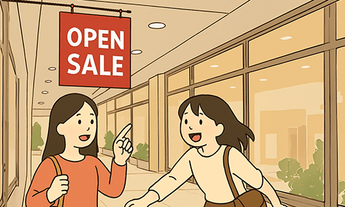 ショッピングモールや大型スーパーの天井を彩る天吊り型のPOPです。